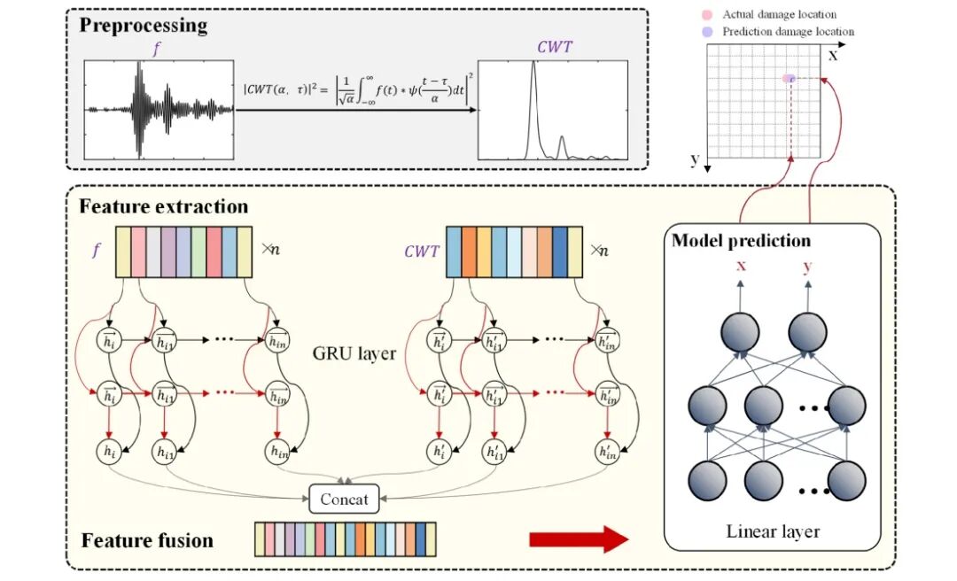 实验目的:碳纤维增强聚合物(CFRP)复合材料因其力学性能而被广泛应用于航空航天领域。然而对复合材料损伤检测与定位技术现仍然具有挑战性。本研究引入了一种新颖的方法,利用多模态门控循环单元神经网络(MGNN)模型对碳纤维增强聚合物复合材料进行损伤检测与定位。