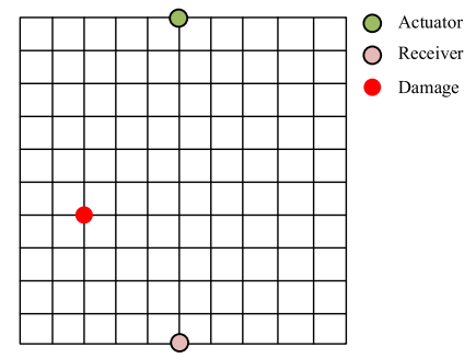 对于复合板的损伤评估,将检测区域设置为400×400mm的正方形区域,并平均划分为100个小方块。从检测区域的左下角开始,以4厘米的间隔定位损伤点。每个伤害点都集中在一个小正方形区域内,并且每次只引入一个模拟伤害。值得注意的是,在传感器位置没有损坏点。这种设置产生了119种不同的损伤信号。